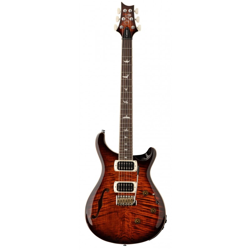 GUITARRA DE CUERPO SEMI-HUECO PRS SE Custom 24 Semi-Hollow Piezo , OB - Orange Tiger Smokeburst, Flame Maple Veneer, Maple Top, Semi hollow Mahogany Body (Shallow Violin Carve) with f hole, Wide Thin, 24 fret Maple neck, 25'' Scale length, 10'' Radius, Rosewood Fingerboard, Bird Inlays, PRS Nut, 85/15 ''S'' Pickups New sloped pickup rings, Piezo Volume, Magnetic Volume and Push/Pull Tone Control w/ 3-Way Blade Switch PRS Patented Tremolo PRS Designed Tuners with Wing buttons, Nickel Hardware, High Gloss Polyurethane finish, PRS SE GigbagValora y opina sobre este producto