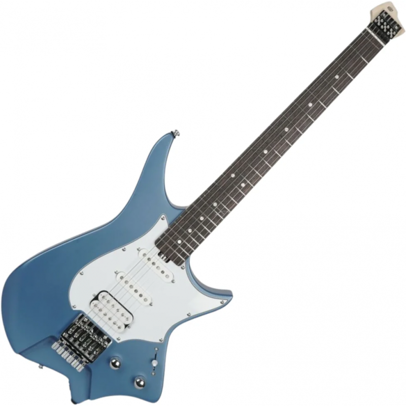 Este modelo destaca por su enfoque moderno y práctico: el diseño headless reduce peso, mejora el balance y elimina problemas típicos de afinación en la pala. Su combinación HSS ofrece una paleta sonora completa, desde riffs densos y agresivos con la humbucker del puente hasta tonos limpios definidos en las posiciones de single-coil.