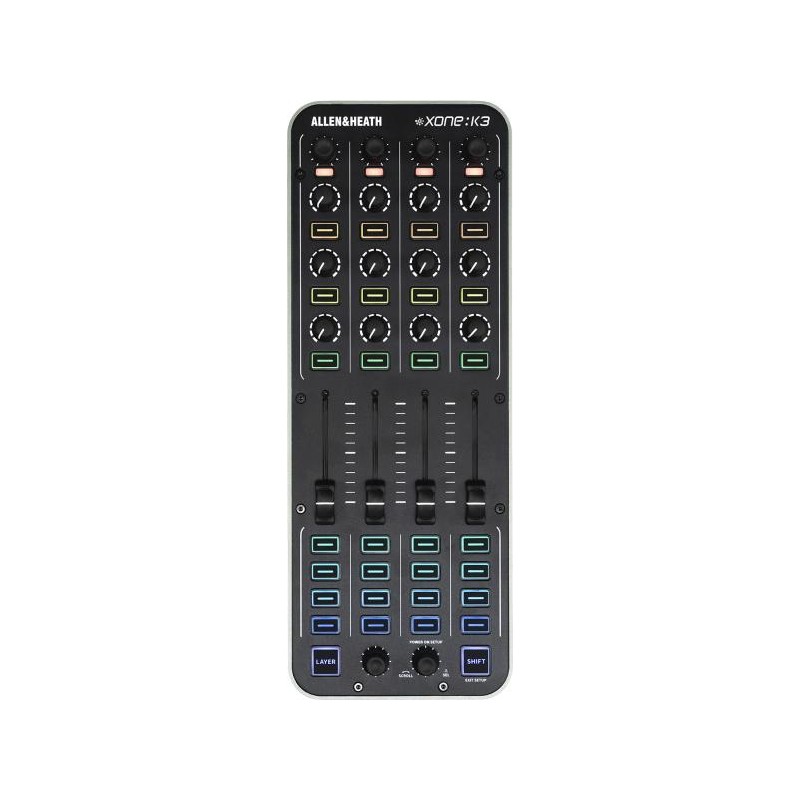 El Allen & Heath Xone K3 es un controlador MIDI profesional para DJ y producción diseñado para ofrecer un control táctil y flexible sobre software como Traktor, Ableton Live o cualquier aplicación compatible con MIDI. Su diseño modular permite usarlo solo o junto a otros controladores de la serie Xone, ofreciendo una integración total en cabinas y estudios. Con 52 controles físicos totalmente asignables, superficie táctil de alta calidad y conectividad avanzada, el Xone K3 está orientado a DJs y productores que buscan máxima personalización, fluidez y rendimiento en directo.